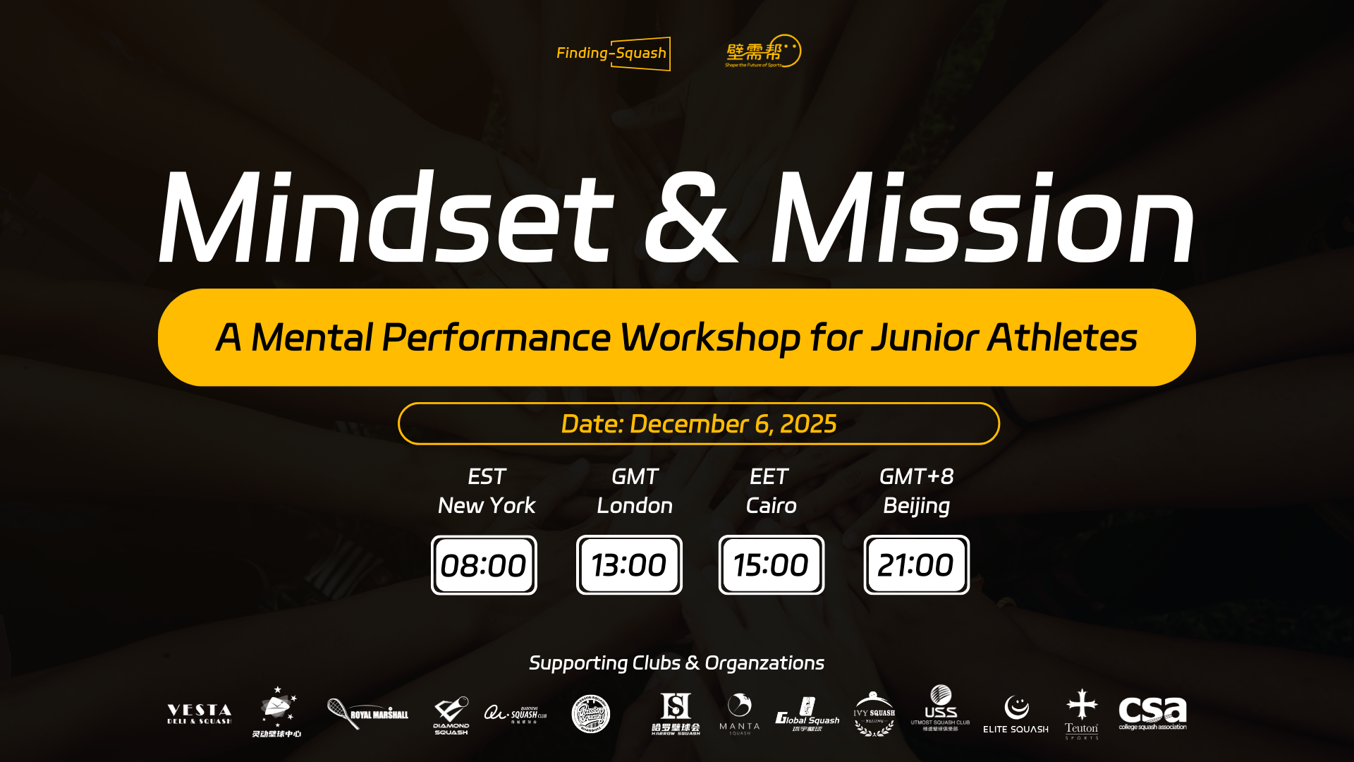 12月6日,FindingSquash 与壁需帮联合举办了全球线上青少年心理赋能讲座,旨在帮助年轻运动员提升比赛心理素质... -